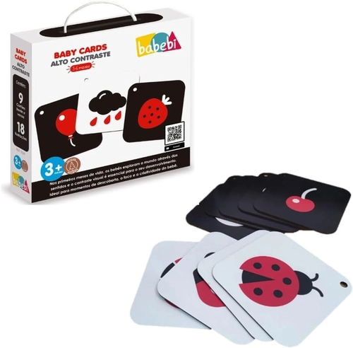 Desperte a curiosidade do seu bebê com os Cartões de Alto Contraste Babebi, especialmente projetados para estimular o desenvolvimento visual nos primeiros meses de vida. Este conjunto inclui 9 cartões com 18 ilustrações cativantes em preto, branco e vermelho, cores que naturalmente atraem a atenção dos bebês a partir dos 3 meses de idade. Cada cartão apresenta imagens simples e bem definidas, como balões, nuvens e outros elementos encantadores que ajudam a desenvolver a concentração e o foco visual do bebê. Os cartões são ideais para momentos de interação entre pais e bebês, proporcionando uma ferramenta educativa que acompanha as primeiras descobertas do mundo. O conjunto vem em uma prática caixa com alça, facilitando o transporte e armazenamento. Perfeito para estimular o desenvolvimento sensorial e cognitivo do seu bebê de forma lúdica e segura.